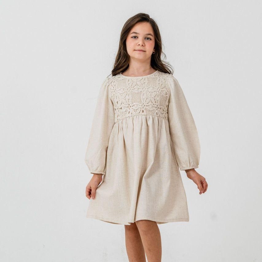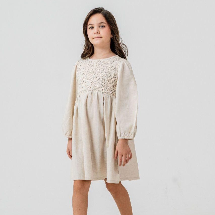 İşlemeli Keten Elbise
